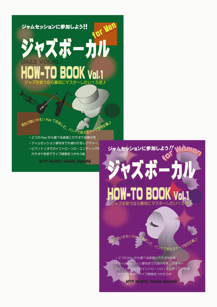 Jazz Vocal Book ジャズボーカルHOW-TO BOOK Vol.1 for Women & Man~ジャムセッションとバンド演奏を楽しむための実践型ジャズボーカル教本~・ジャズを歌ってみたい・セッションに参加してみたい・いつものレパートリーから一歩先に進みたい本書は、そんな想いを持つボーカリストのために作った”実際の現場で使える”ジャズボーカル教本です。選曲は、ジャムセッションやライブで必ず耳にする定番スタンダード15曲。すべての楽曲を、女性と男性それぞれ歌いやすい2つのKeyで掲載しています。 本書の特徴・ジャムセッション・バンド演奏に対応したテーマ譜(コード譜)付き楽譜・英語歌詞・イントロ/エンディング入りで本番を想定した構成・ピアノ・ベース・ドラムによるカラオケ音源(MP3)付き※HPからダウンロードも可能です楽譜は一段譜のテーマ譜(コード譜)構成。ピアノソロ用伴奏ではなく、バンドの中で歌う感覚を身につけることを目的としています。 初心者から経験者までジャズをはじめて歌う方にも取り組みやすいよう、やさしいレクチャーアドバイスを掲載。・テーマの歌い方・フレーズの捉え方・グルーヴの感じ方すでにライブやセッションで歌っている方には、テーマフェイクやスキャット練習にも活用できます。 こんな方にオススメ・ジャズボーカルを目指している方・セッションに参加してみたい方・新しいレパートリーを増やしたい方・洋楽・英語曲を自然に歌いたい方・ジャズボーカル講師・レッスン教材を探している方 書籍・音源について・楽譜:テーマ譜(コード譜)・CD収録音源:ピアノ/ベース/ドラム(MP3音源)※歌メロディは入っていません。・一部の再生機器ではMP3が再生できない場合があります。※カラオケ音源はHPからダウンロードも可能です。 レッスンとのつながりレッスンでは、本書の楽曲を使いながら発声・グルーヴ・言葉の置き方を実際の声に合わせて整えていきます。「譜面は読めるけど、歌うとジャズにならない」そんな悩みを持つ方にもオススメです。 書籍を購入する(for Men) 書籍を購入する(for Women)